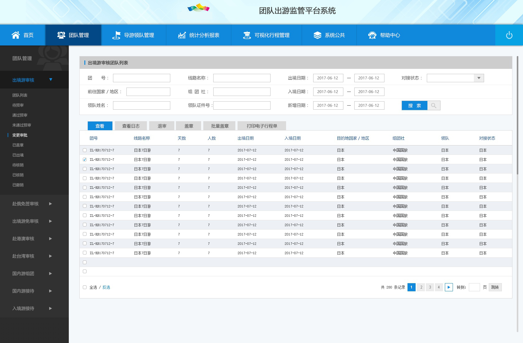 1) 團隊管理:出境游審核、赴俄免簽審核、出境游免簽審核、赴港澳審核、赴臺灣審核、國內(nèi)游組團、國內(nèi)游接待、入境游接待。