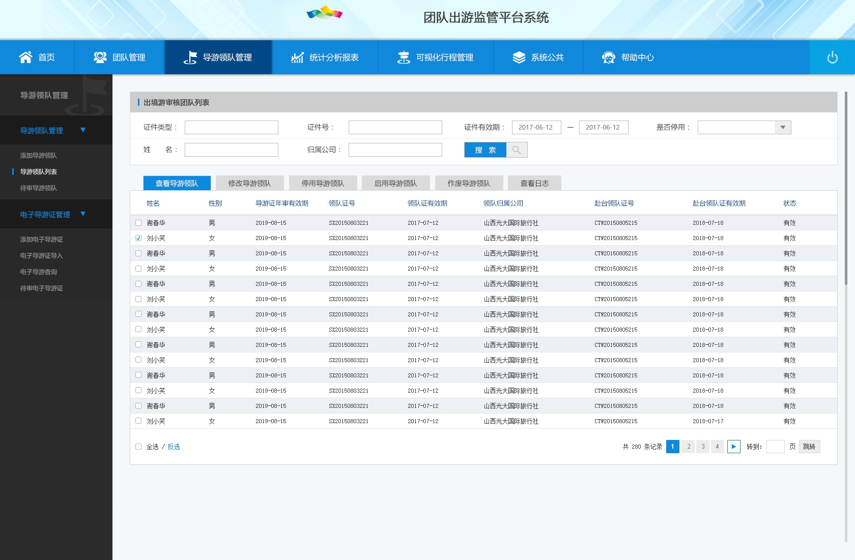 2) 導(dǎo)游/領(lǐng)隊管理:導(dǎo)游領(lǐng)隊管理、電子導(dǎo)游證管理。