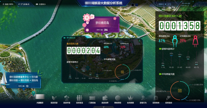景區旅游大數據分析展示系統借助云計算、GIS、移動通信、人工智能等多個領域的技術,融合了視頻處理、圖像處理、模式識別、運動軌跡判別等統計分析算法,通過對接景區門禁票務數據、視頻監控數據、電子商務數據,分析景區客流量信息、車輛識別數據、WIFI探針數據、客源地信息、熱力圖信息,對游客的年齡層次、來源省份和地市構成比例、在景區的停留時間、各景點客流量等信息進行周期性統計和挖掘,并與歷史數據進行對比分析,為景區旅游業的科學管理、游客的旅游體驗和面向客源地的精準營銷提供數據支撐。