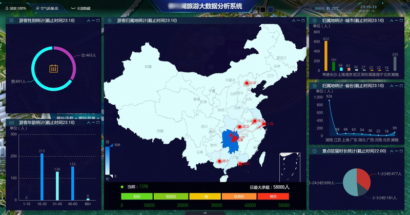 5. 數據展現層:將數據分析結果通過圖表直觀化、可視化的界面展示出來,從而方便景區及時、準確的掌握重要信息。