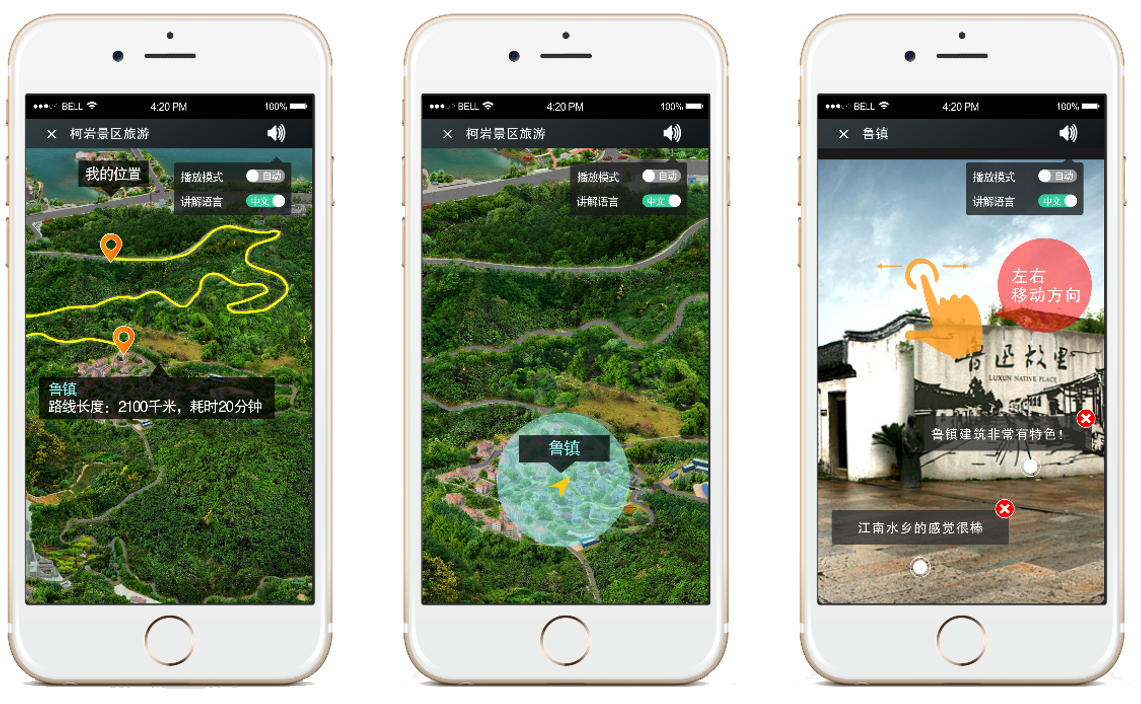 根據游客位置自動獲取講解信息,實現移步換景,為游客提供“走到哪里、講到哪里”導游服務。