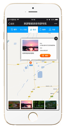 當游客到達需要語音講解的景點附近可自動獲取相應的語音導游信息,游客可決定是否需要進行語音播放。
