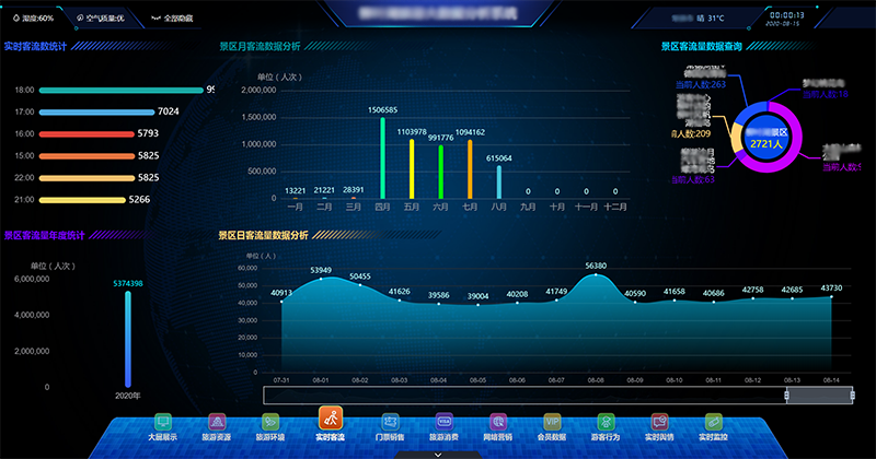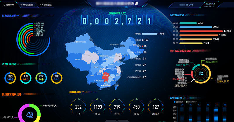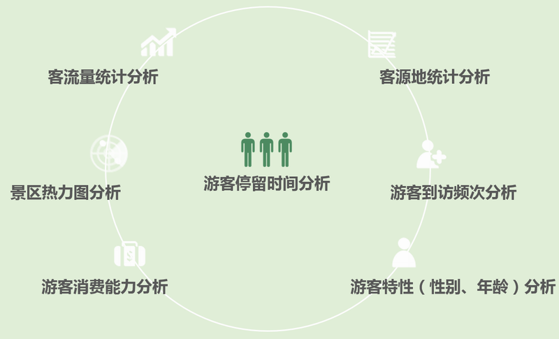 通過對接景區門禁票務數據、視頻監控數據、電子商務數據,車輛識別數據、WIFI探針數據、客源地信息、熱力圖信息,分析景區客流量信息,對游客的年齡層次、來源省份和地市構成比例、在景區的停留時間、各景點客流量等信息進行周期性統計和挖掘,并與歷史數據進行對比分析,為景區旅游業的科學管理、游客的旅游體驗和面向客源地的精準營銷提供數據支撐。