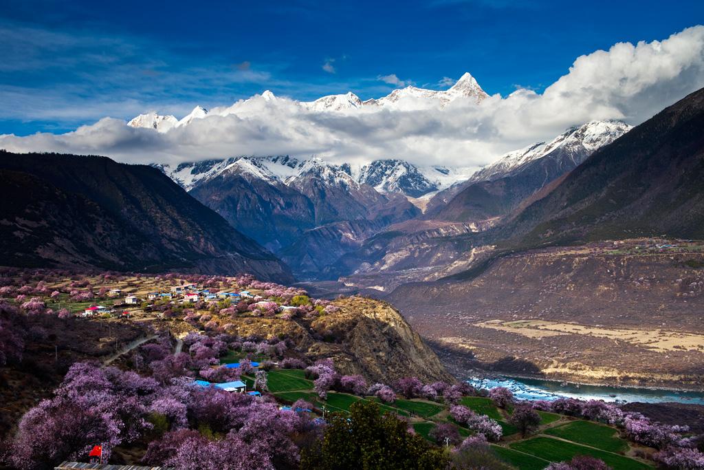 林芝桃花以野生為主,在林芝大部分地區都有分布。由于海拔自東向西不斷升高,每逢初春,漫山遍野桃花次第盛開,數月時間里與藍天白云、雪山冰川交相輝映,成為獨特景觀,吸引國內外游客慕名“追桃”而來。
