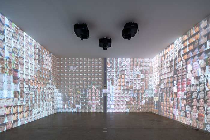 觀眾進入空間后,系統自動識別人臉,通過算法分成兩類,左側是面部特征最不相似的人,右側是最相似的人。觀眾通過人臉識別感受大數據的普遍存在。它所涉及的問題包括自由與隱私的邊界。馮博一認為,《識別》提示出警覺的同時,非常有趣。