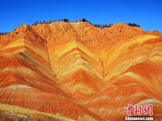 張掖七彩丹霞地貌,以層級錯落交替、氣勢磅礴、形態豐富、色彩斑瀾而稱奇。 吳學珍 攝