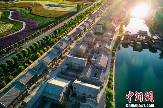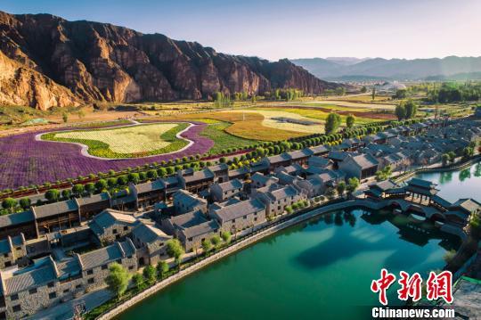 圖為航拍張掖丹霞口旅游度假小鎮。 鐘欣 攝