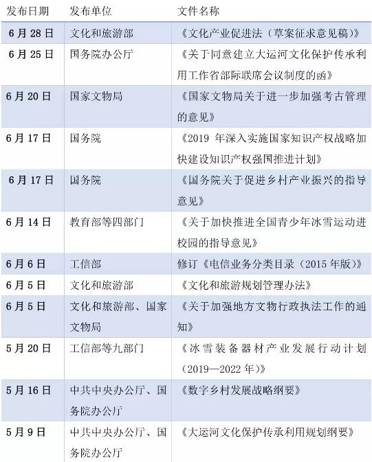 二、2019上半年文化產業政策亮點