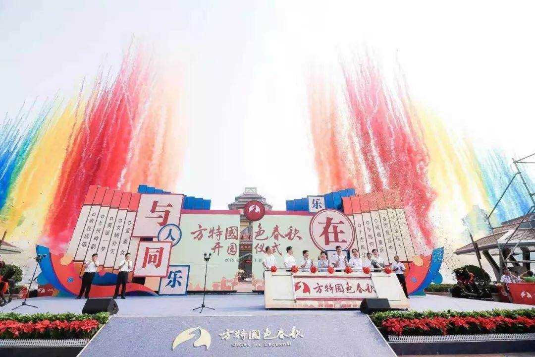 隨著鏗鏘震撼的鼓樂聲響起,開園儀式在兼具濃郁東方文化韻味與時代氣息的表演中拉開帷幕。在眾人的見證下,嘉賓們共同推動象征邯鄲方特正式開園的啟動桿,開啟了邯鄲方特國色春秋的恢宏序幕。現場鼓樂齊鳴、彩煙綻放,邯鄲方特國色春秋向廣大游客正式展現了它的歡樂面貌,盛情邀請廣大游客“樂在成語中”。