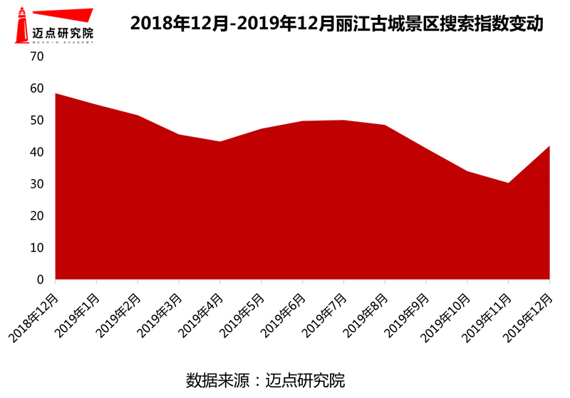 在反映潛在用戶(hù)關(guān)注的搜索指數(shù)上,本月麗江古城景區(qū)表現(xiàn)較為突出。經(jīng)邁點(diǎn)研究院數(shù)據(jù)監(jiān)測(cè),12月麗江古城景區(qū)搜索指數(shù)高達(dá)42.04,環(huán)比增長(zhǎng)38.47%,這表明旅游市場(chǎng)中關(guān)注該景區(qū)的潛在客群逐漸增多。