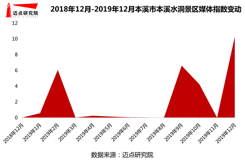 就12月媒體指數(shù)表現(xiàn)而言,本溪市本溪水洞景區(qū)表現(xiàn)最優(yōu),指數(shù)增至10.29,排名整體提升208位,相較于上半年,該景區(qū)下半年媒體關(guān)注度較高。