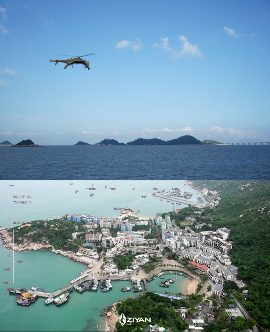 紫燕無人機在某旅游島進行空中巡邏時,吊艙拍攝畫面