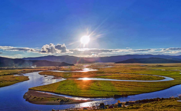 紅原月亮灣是黃河上游重要水源——白河(嘎曲河)的一段,因草原濕地的影響,白河在紅原境內(nèi)呈彎彎流淌的流向,美麗寬廣的草原就像柔軟的綠色地毯鋪在夢幻的大地上,清澈的河水在草原上劃出道道舒緩優(yōu)美的弧線,恰似彎彎的月亮,“月亮灣”也因此而得名。月亮灣是紅原大草原生態(tài)旅游風(fēng)景區(qū)內(nèi)最美的地方。