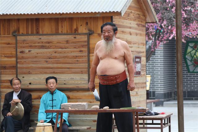 在吳橋雜技大世界江湖文化城里,年近古稀的老藝人高福洲一邊敲鑼,一邊唱著鑼歌與觀眾互動。“練好了是輕氣功,練不好就是剖腹產了。”他經常在表演“肚皮上切菜”時這樣開玩笑說。