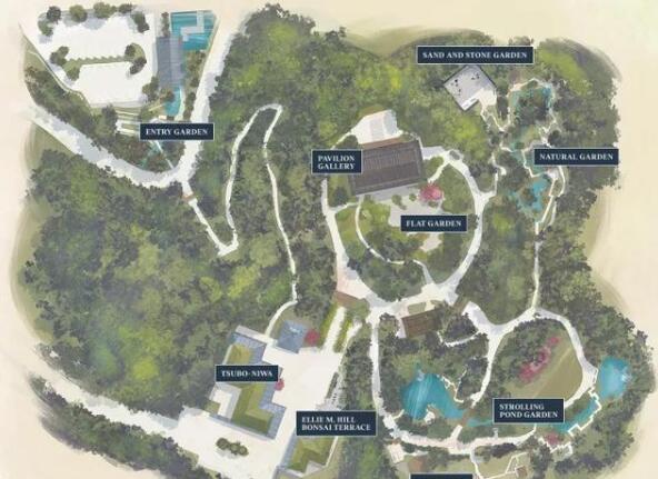 花園占地5.5英畝,佐藤遠(yuǎn)野在這塊地規(guī)劃了5個(gè)風(fēng)格迥異的園林,分別代表了日本園林建筑不同的歷史發(fā)展期。