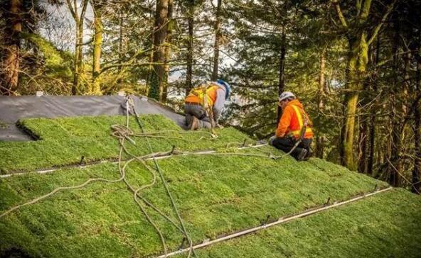 建筑屋頂?shù)淖饔靡膊豢尚∮U,屋頂外層覆蓋了綠色植物用來(lái)吸收雨水,防止水分流失。