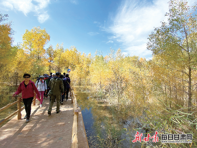 金塔縣胡楊林景區(qū)內(nèi)道路便捷,游人如織。 薛巍敏 攝
