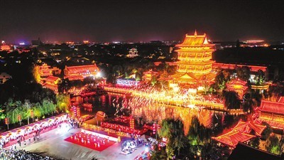 山東臺兒莊古城景區培育夜間消費新產品,激發消費新活力。