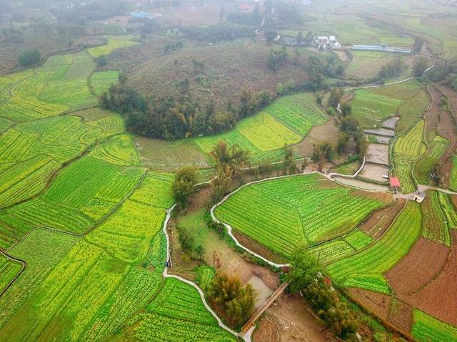 柳州市柳江區(qū)土博鎮(zhèn)水源村木貫屯的油菜花地,在雨霧中別樣美麗(無人機(jī)照片)。許建梅 攝