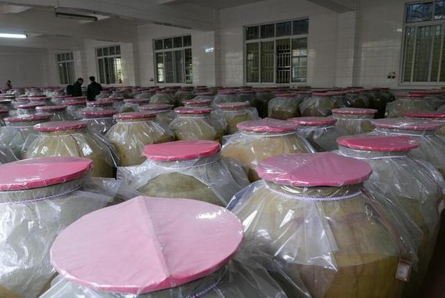 古嶺龍酒廠內(nèi)的傳統(tǒng)陶缸浸泡間。許建梅 攝