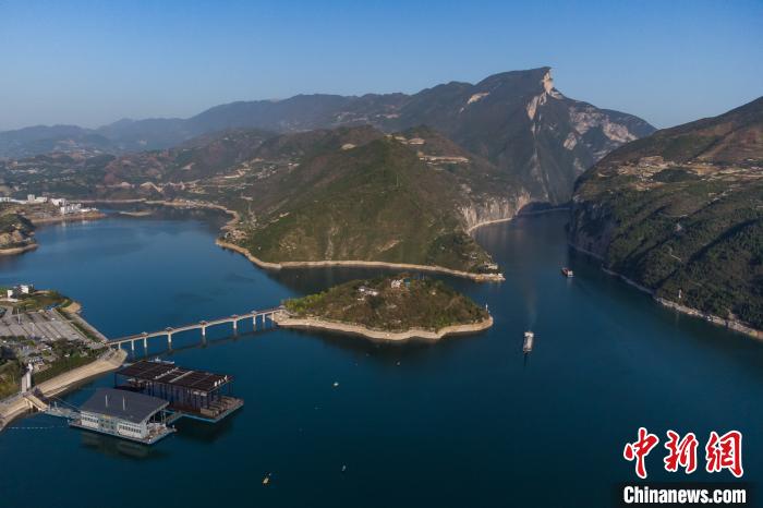 圖為航拍夔門與白帝城。 何蓬磊 攝