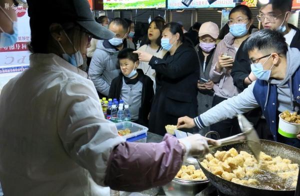 4月17日晚,記者實地探訪濟南環聯夜市,發現這里最大的特色,就是有著數條種類齊全的美食街。燒烤、冰粉、腸粉、生煎、辣子雞......一路走下來,耳邊總能絡繹不絕聽到攤主們此起彼伏的吆喝聲。