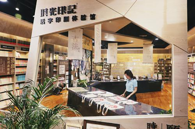 具體來看,臨沂書城關于文旅融合的創新探索體現在外在空間設計和內涵打造等多方面。臨沂書城將沂蒙紅色文化、瑯琊文化與自身特色相結合,打造沂蒙精神主題展架和臨沂本土作家作品專架。以文化為靈魂,旅游為載體,臨沂書城將“新華”品牌與旅游品牌相結合,打造了古典文學館、時光印記館等十余個精致的文化主題空間。同時,整合店內資源,與當地非物質文化遺產傳承人、手工達人等合作,創立“閱瑯琊”非遺文創市集,并在每月的月末定期舉辦,豐富讀者的閱讀體驗。