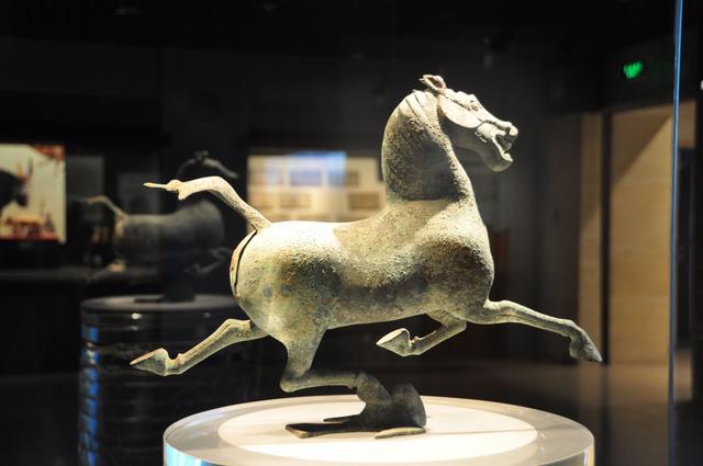 銅奔馬于上世紀60年代出土于甘肅武威雷臺漢墓,奔跑如飛的側身形象廣為人知,被確定為中國旅游標志。而從正面看,馬頭往左傾、嘴呈嘶鳴狀,以這一形象開發的文創產品并不多見。