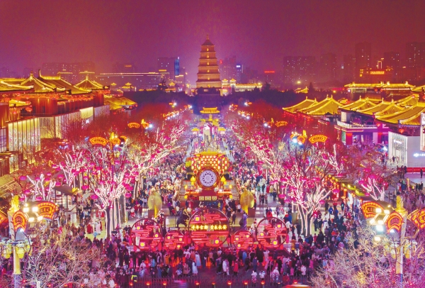 大唐不夜城有多火?今年春節期間,因客流、車流飽和,街區不得不取消或調整街區演出時間,將演出場地“省下來”給游客。春節假期街區日均游客量達65萬人次。