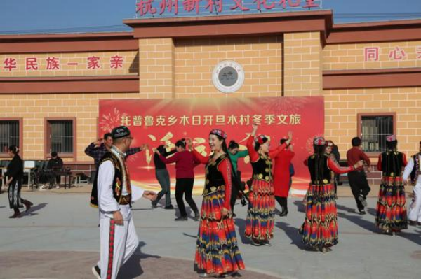 近日,托普魯克鄉木日開旦木村正在開展冬季文旅活動。活動在精彩的歌舞表演中拉開帷幕,現場人頭攢動,熱鬧非凡。活動現場介紹了木日開旦木村文旅產業示范項目基本情況及運營發展規劃,并進行了簽約。依托文旅融合,該村在杭州市援疆指揮部的大力幫扶下,讓鄉村既有“顏值”又具有“內涵”,煥發生機活力,邁向富裕富足。