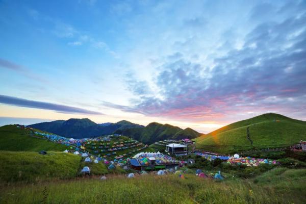 景區堅持多文旅業態融合發展,打造了國內最大戶外帳篷節活動舉辦地——草甸星空帳篷營地,配套融入國家登山健身步道、高山足球、高山滑草、騎行、漂流等體旅融合業態,形成“水陸空”大空間體育運動產品體系。同時,大力研發戶外裝備,武功山與戶外特工聯名款、沖鋒衣、特種兵獎章深受游客歡迎。