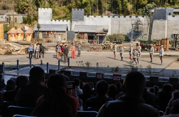 位于大別山腹地的安徽霍山縣落兒嶺鎮(zhèn),寂靜春風(fēng)掠過草木葳蕤的崖壁,峽谷里卻突然騰起硝煙,一陣陣激烈的槍炮聲在山谷間回蕩。這是大型實景劇《大別山傳奇》的演出現(xiàn)場。年輕游客白欣語說,置身現(xiàn)場,數(shù)十名戰(zhàn)士從山間無畏地沖向敵人時,感覺自己是在歷史中震顫的參與者。