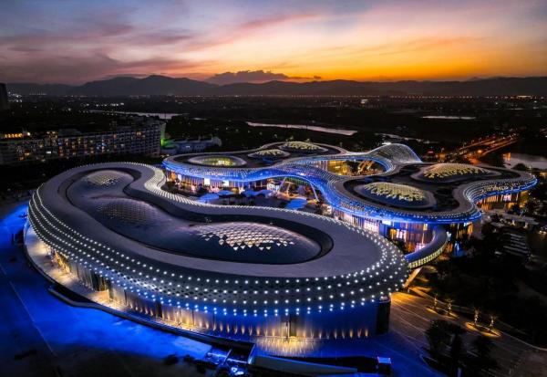 一期“海棠花”建筑群以花朵造型詮釋東方美學,曾斬獲中國建筑質量最高獎“魯班獎”;二期“貝殼”建筑群則以海洋珍寶為靈感,流線型設計與碧海藍天相映成趣。連接兩者的“云戒橋”是全球首座萬向鉸斜拉上人景觀橋,兼具功能性與藝術性,成為游客必打卡的地標。