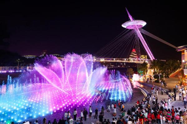 景區內設有水幕電影噴泉秀、全球美妝博物館、藝術連廊、環島觀光木棧道等特色景點。2025年五一期間,C區廣場更化身為“戶外運動街區”,以海島網球熱力場為核心場景,集結11家戶外品牌,搭配酒水派對和巡游演繹,打造潮流運動新體驗。