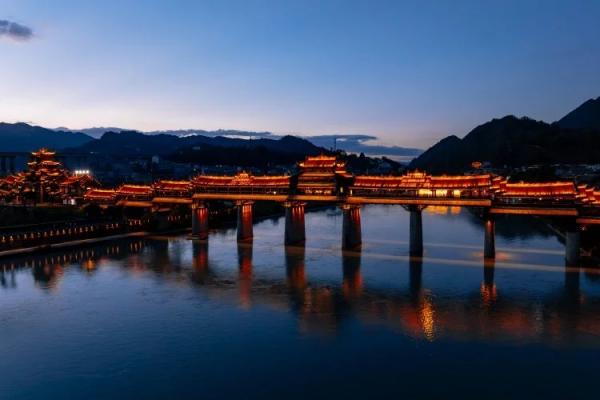 夕陽映照下,濯水古鎮風雨廊橋的影子在阿蓬江面拉長。橋上,背著槳板的運動員與拖著行李箱的高鐵游客擦肩而過;三十公里外,恐龍遺址公園的講解員關閉展館燈光,最后一批小游客仍圍著“黔多多”全息影像戀戀不舍。當恐龍的遠古足音與高鐵的現代轟鳴在這片土地共鳴,黔江的故事,才剛剛翻開新的篇章。