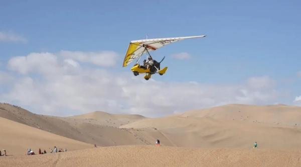 在敦煌鳴沙山月牙泉景區(qū)入口處,等待體驗低空飛行的游客排起長隊。貴州游客張女士剛結束八分鐘的飛行體驗,興奮地向同伴展示手機拍攝的空中全景:“在下面根本看不到月牙泉全貌,飛到上面才看清它像一彎真正的月亮鑲嵌在沙漠里!”