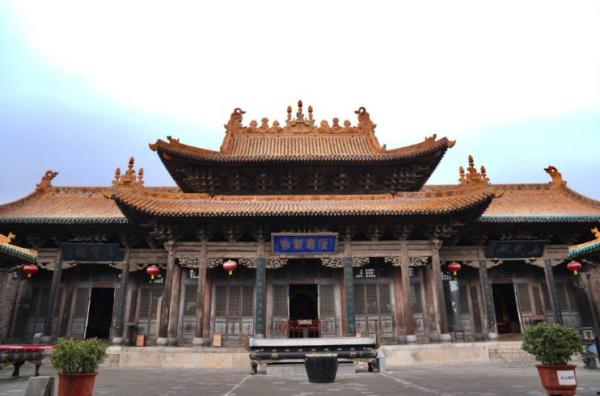 介休后土廟則被譽為“三晉琉璃藝術博物館”。這里的琉璃增加了白、紫、青等顏色,突破了傳統琉璃只有黃、綠、藍三種顏色的限制。后土廟大量使用和故宮一樣的明黃色琉璃,其琉璃構件多取材于介休市洪山鎮,燒制方法在山西獨樹一幟。