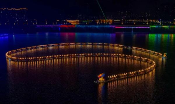 2025914日晚,在第三屆張家界旅游發展大會前夕,慈利縣放馬洲公園的澧水河畔上演了一場“活態非遺+科技光影”的盛宴。那條長達500米、由66根竹筏串聯而成的板板龍燈,結合燈光秀、無人機表演和水幕等現代科技元素,打造出“水陸空”三維沉浸式夜游體驗。