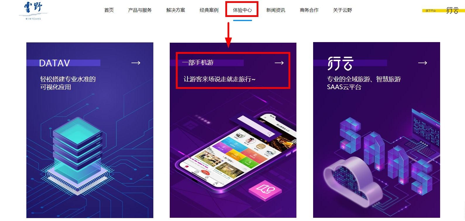下面介紹下云野的“一部手機游”景區管理平臺軟件特色功能,如需要直接體驗的用戶可登入官網m.foodgood.com.cn,點擊導航欄“體驗中心”-------- “一部手機游”即可體驗。